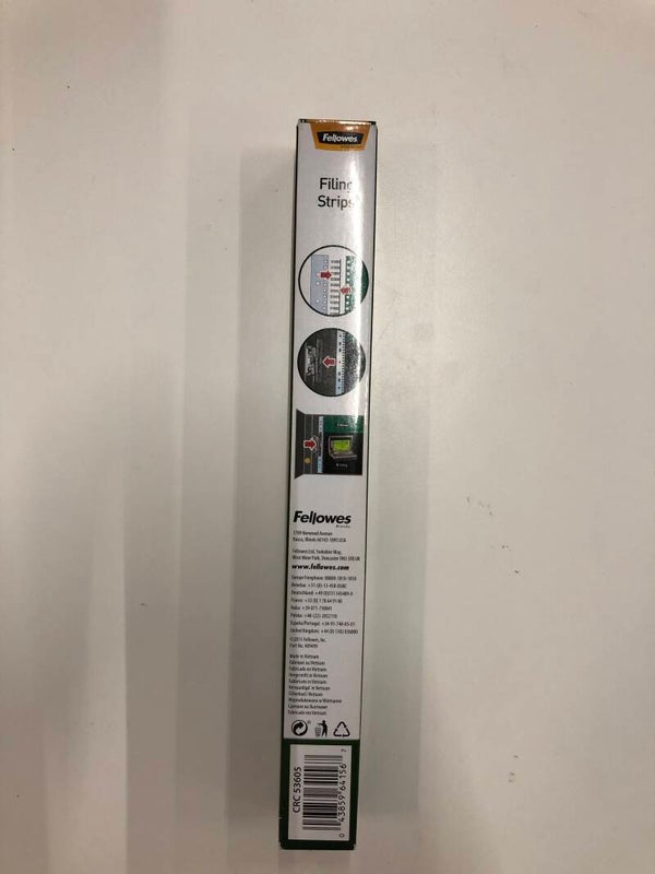 Filing strips Fellowes CRC 53605ean: 4385964156Uit PP. Zelfklevende filing strips zijn een unieke oplossing voor het opbergen van documenten in een ringmap zonder deze te perforeren.A4 formaatVerpakking van 100 stuks