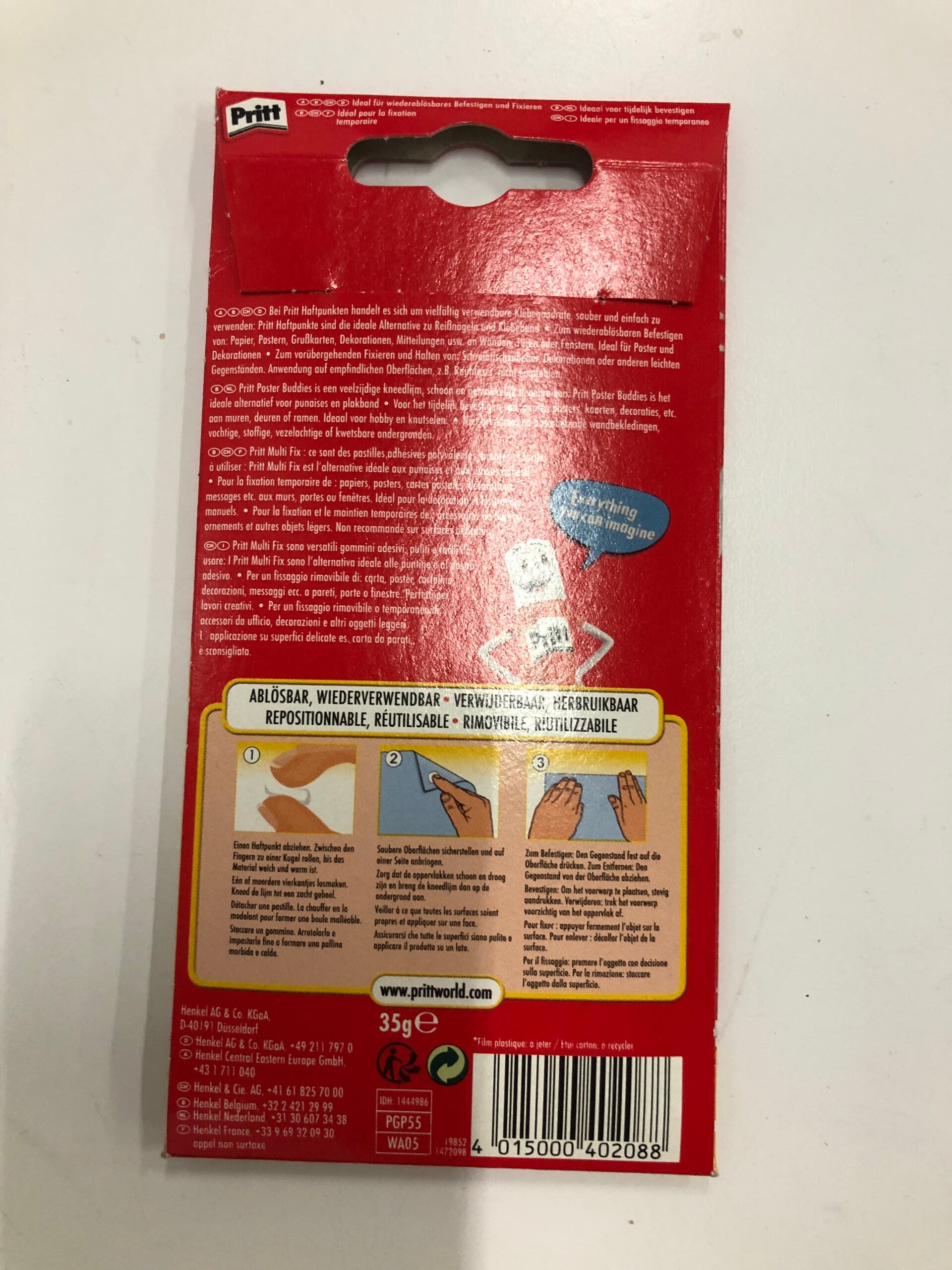 - De kindvriendelijke, witte plakgum voor onzichtbare bevestiging van posters en tekeningen.